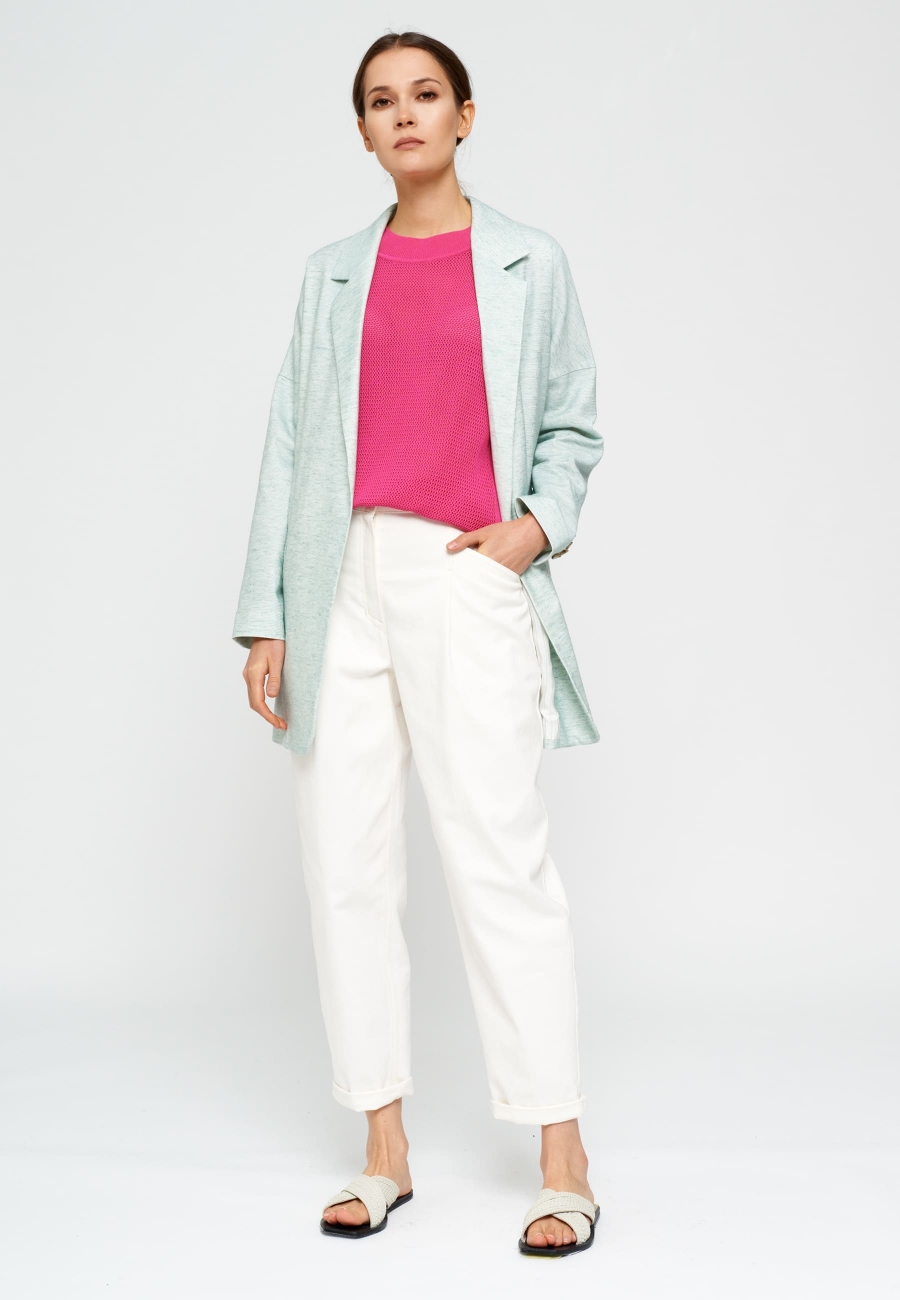 Джемпер женский, прямого силуэта, без рукавов. Округлый вырез горловины. Фактурная вязка.
