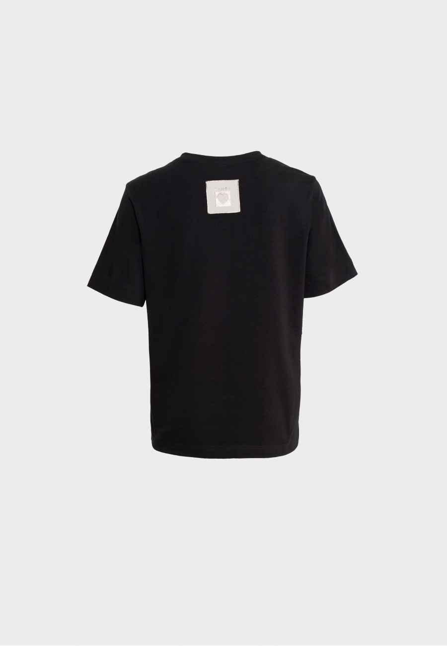 Джемпер женский, прямого силуэта, с короткими втачными рукавами и круглым вырезом горловины. По переду изделия печать.