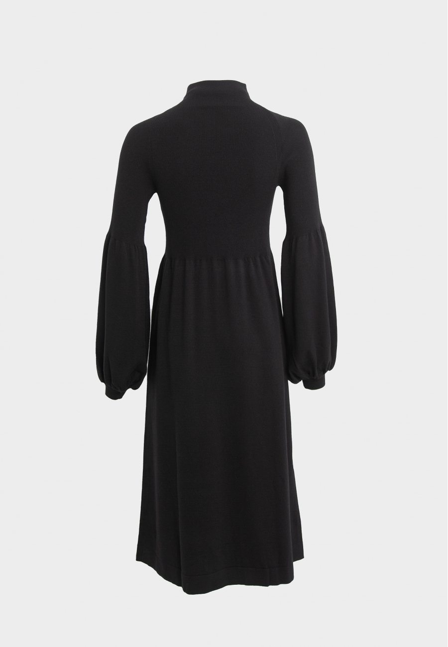 Платье женское длиной ниже линии колен. Рукава реглан со сборкой по низу и манжетами. Горловина цельнокроенная стойка.