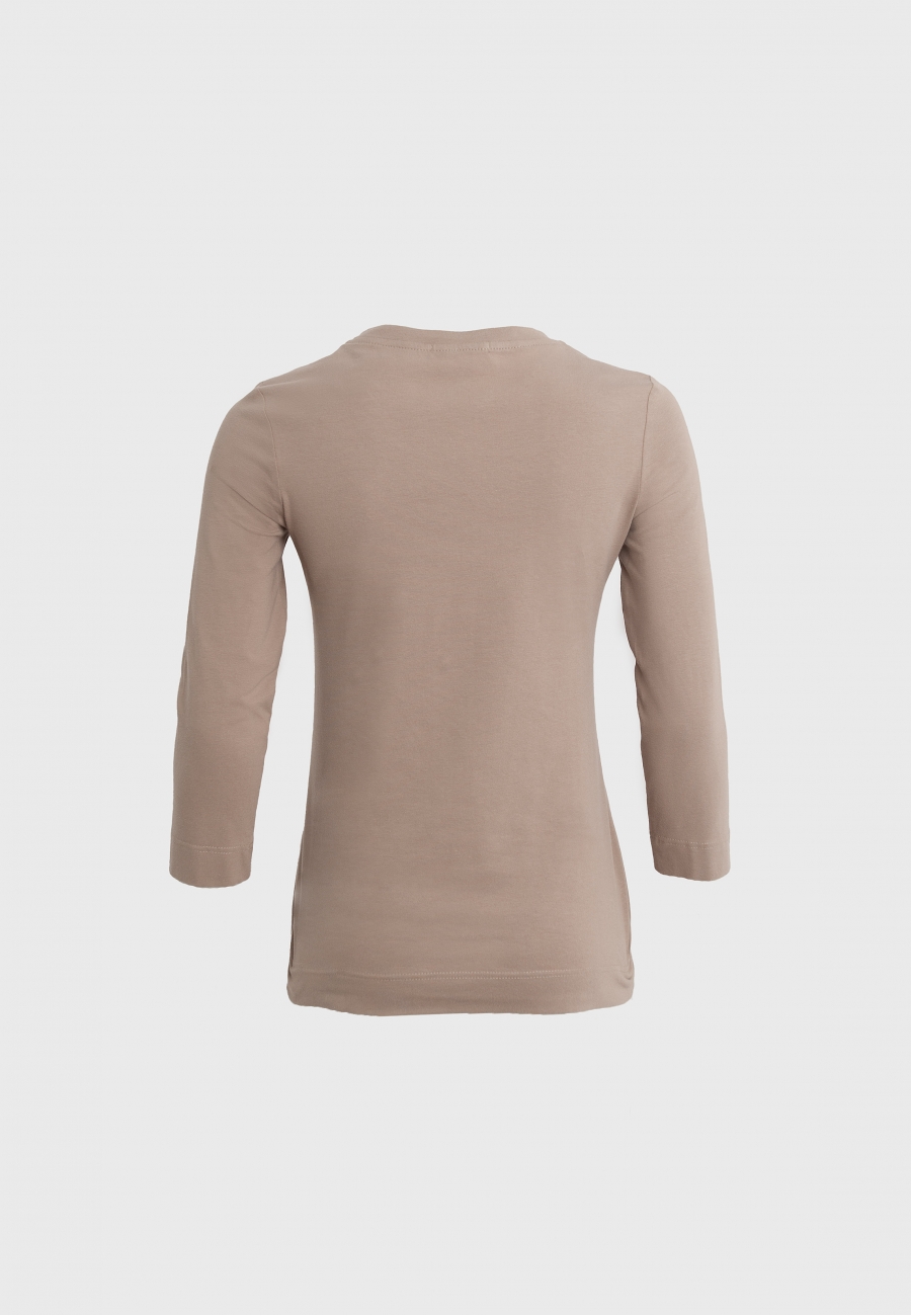 Блузка женская, полуприлегающего силуэта, с втачными рукавами длиной 3/4, круглым вырезом горловины. Блузка без застежки.