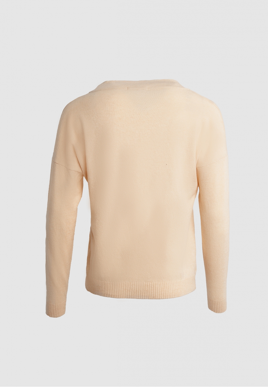 Кардиган женский, прямого силуэта, с застежкой-планкой на петли и пуговицы, спущенными рукавами и V-образным вырезом горловины.