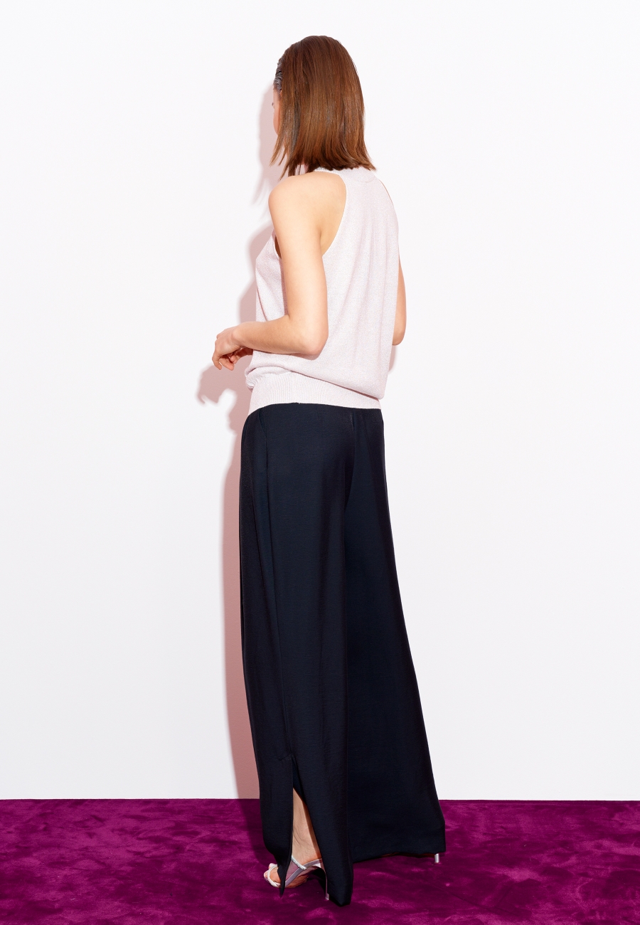 Топ женский, вязаный, с воротником-стойкой и американскими проймами.